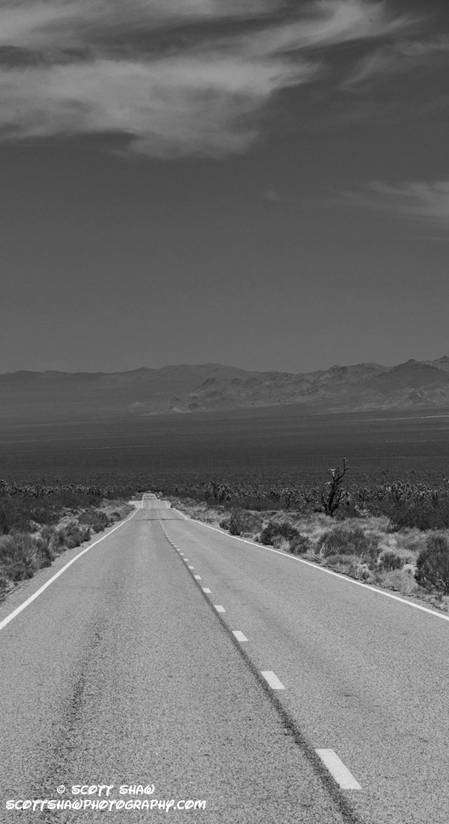 If you are a fan of this type of composition, the Mojave National Preserve is the spot for you! Miles, upon miles, upon miles of similar compositions, without traffic. That make sit easy to stand in the middle of the road to get that perfect composition. But just in case, keep your head on a swivel or have a spotter.