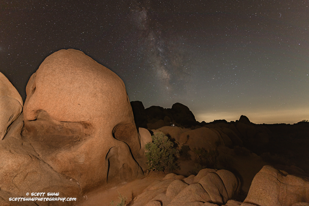 I did catch a part of the Milky Way, nut there is too much sky glow from Palm Springs in the image. I used my Lume Cube LED Light Panel (#NotaSponsor) to light Skull Rock and the foreground.