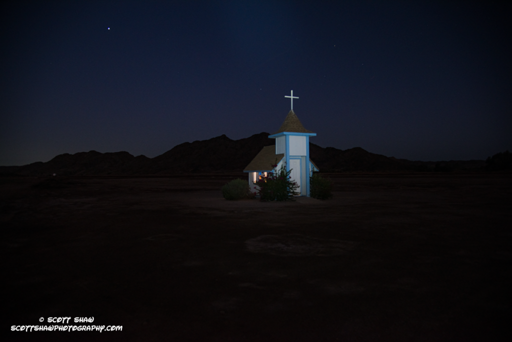 In the spirit of the hardest part of photography is being there, it took me a while to get this image. I drove by Loren Pratt’s Little Chapel numerous times over the course of two weeks, but I was either on my way to meetings, or dog-a**ed tired from a full fay/evening of meetings.