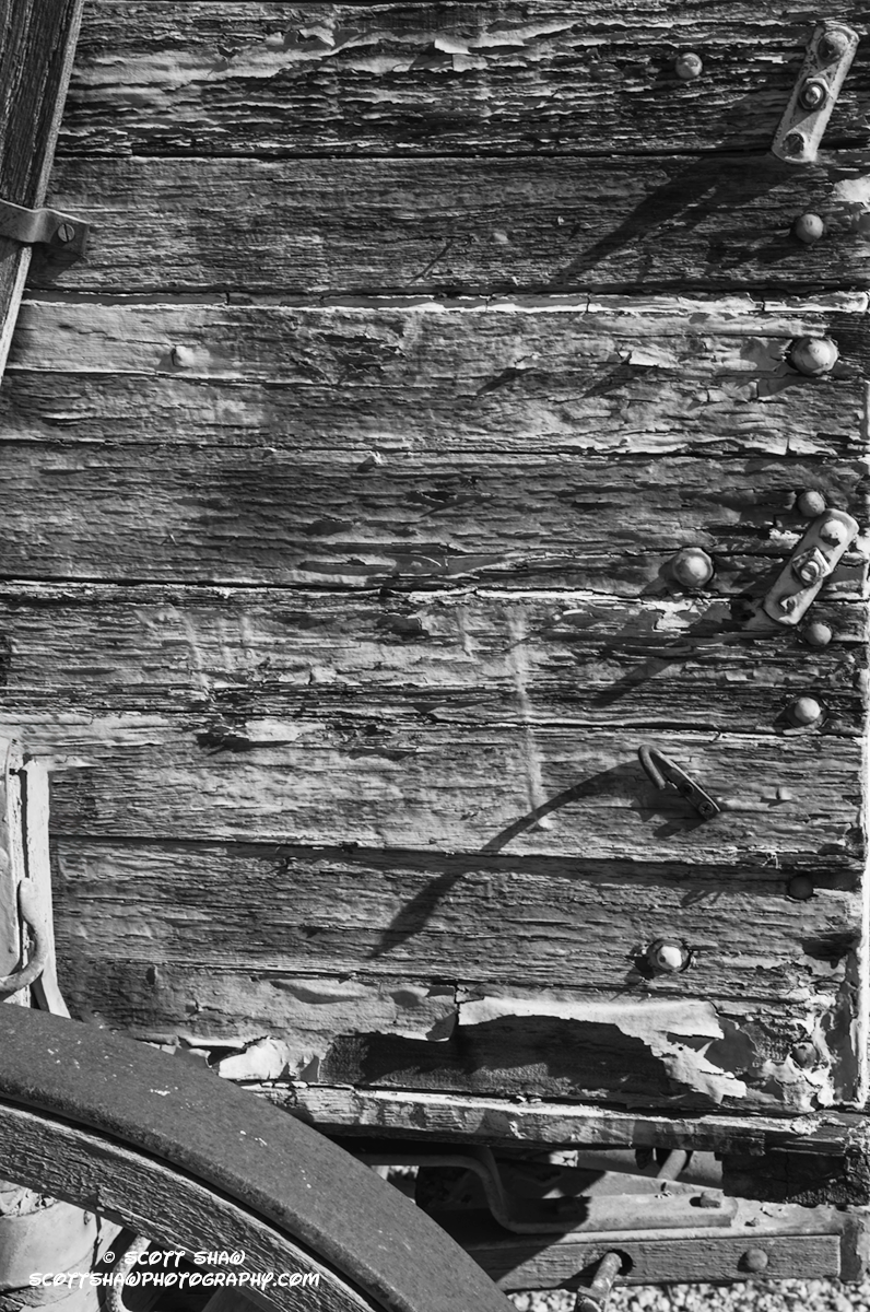 This is the weathered side of a wagon outside the visitor center.