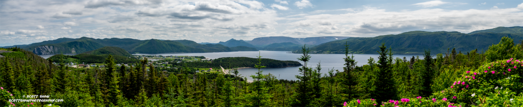This is a three image panorama of Neddy Harbor. Neddies Harbour Inn is the just left of center of the image. The inn is a great place to stay while exploring Gros Morne National Park. You can also get a great dinner, and box lunches, at the Black Spruce Restaurant located at the inn.