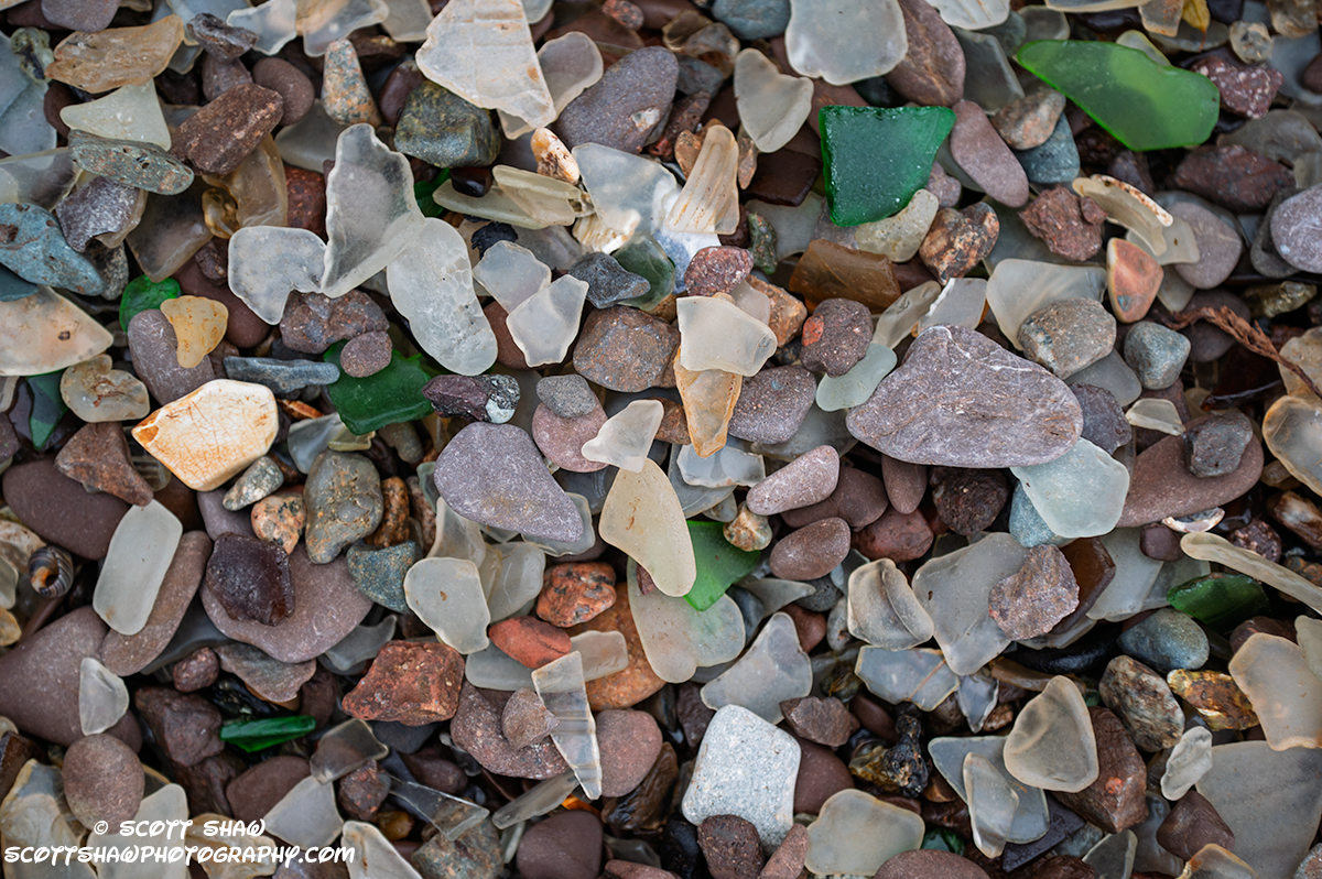 Here is a very small section of Glassy Beach. The beach is about 30 yards long, and every inch is just as covered with sea glass as this small section. It is truly amazing; but remember Please Don’t Remove Glass From The Beach.